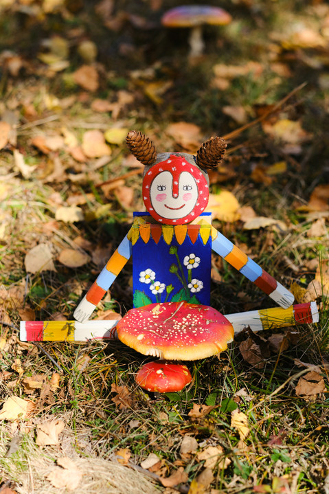 Stefania, nel laboratorio di Maraconde, ha creato per LemmeLemme Amanita, un burattino nato dal legno dei boschi della Valle Camonica.